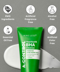 Nineless A-Control Heartleaf & BHA Cleanser blended with natural ingredients delivers a gentle cleanse that leaves the skin clear and refreshed.