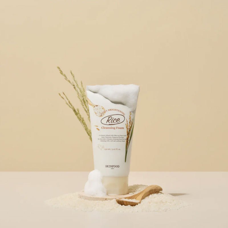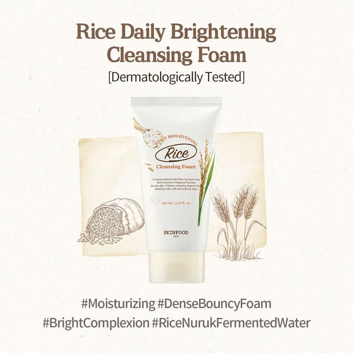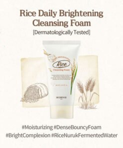 Skinfood Rice Daily Brightening Cleansing Foam with Rice Bran water carefully removes impurities and cleanses the skin to leave it soft and radiant.