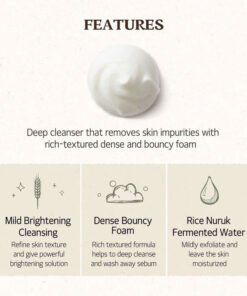 - Infused with nourishing rice extract for brightening and revitalizing skin.