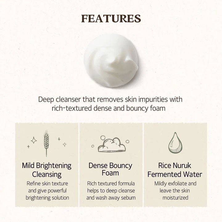 Experience the benefits of clearer, brighter skin with every wash. The Rice Daily Brightening Cleansing Foam not only cleanses but also enhances your skin's natural luminosity. Use daily to achieve a fresh, rejuvenated complexion that feels soft and looks luminous.