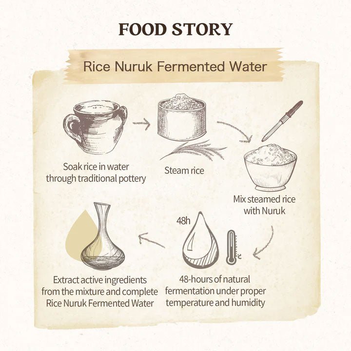 Odae Rice Bran Water, rich in proteins, vitamins, and minerals, helps to brighten and nourish the skin.