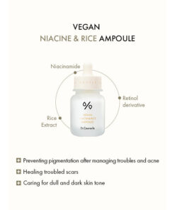 Introducing the Vegan Niacin & Rice Ampoule by Dr. Ceuracle, a transformative skincare solution designed to illuminate and rejuvenate your complexion. This ampoule harnesses the power of niacinamide and rice extract to deliver a radiant, smooth, and even skin tone, ideal for those seeking a natural glow.